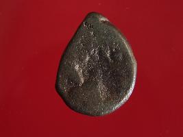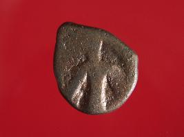 | Description / विवरण | This is a copper coin. Shape is almost circular. Surface is smooth and shiny. The depression on the ovberse side depicts standing human figurine of vasudeva and reverse side is shiva seated on bull. Appearance is copper brown. It is a treated coin. |