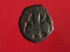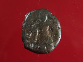 | Description / विवरण | This is a copper coin. Shape is almost circular. Surface is smooth and shiny. The depression on the obverse side depicts standing human figurine of vasudeva and reverse side is shiva seated on bull. Appearance is copper brown. It is a treated coin. |