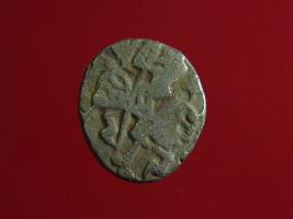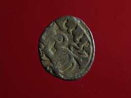 | Description / विवरण | This is a copper coin. Shape is almost circular. Surface is smooth. The depression on obverse side depicts a man sitting on a horse and holding a spear in his right hand. Reverse side depicts a bull in a sitting position and some inscription written above. Appearance is metallic bronze. |