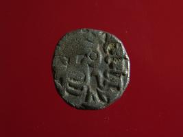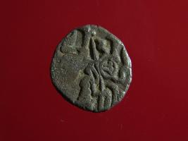 | Description / विवरण | This is a copper coin. Shape is almost circular. Surface is smooth. It is a silver coating coin. The depression on overse side depicts a man sittting on a horse and holding a spear in his right hand and reverse side a bull in a sitting position and some inscription written above. Appearance is metalic bronze. |