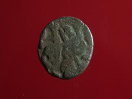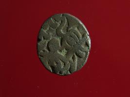| Description / विवरण | This is a copper coin. Shape is almost circular. Surface is smooth. It is a silver coating coin. The depression on obverse side depicts a man sitting on a horse and holding a spear in his right hand and reverse side a bull in a sitting position and some inscriptions written above. Appearance is metallic bronze. |