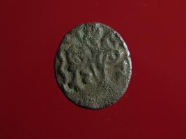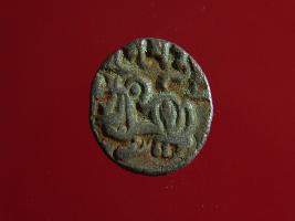 | Description / विवरण | This is a copper coin. Shape is almost circular. Surface is smooth. It is a silver coating coin. The depression on obverse side depicts a man sitting on a horse and holding a spear in his right hand and reverse side a bull in a sitting position and some inscriptions written above. Appearance is metallic bronze. |