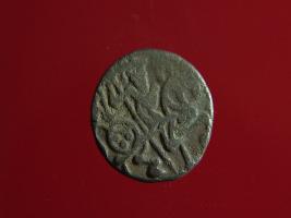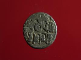 | Description / विवरण | This is a copper coin. Shape is almost circular. Surface is smooth. It is a silver coating coin. The depression on obverse side depicts a man sitting on a horse and holding a spear in his right hand and reverse side a bull in a sitting position and some inscriptions written above. Appearance is metallic bronze. |