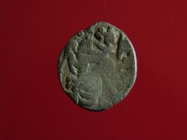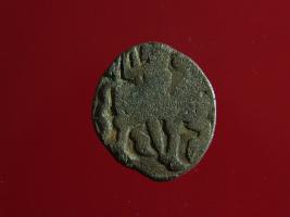 | Description / विवरण | This is a copper coin. Shape is almost circular. Surface is smooth. It is a silver coating coin. The depression on obverse side depicts a man sitting on a horse and holding a spear in his right hand and reverse side a bull in a sitting position and some inscriptions written above. Appearance is metallic bronze. |