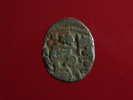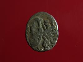 | Description / विवरण | This is a copper coin. Shape is almost circular. Surface is smooth. It is a silver coating coin. The depression on overse side depicts a man sittting on a horse and holding a spear in his right hand and reverse side a bull in a sitting position and some inscription written above. Appearance is metalic bronze. |