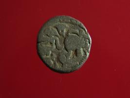 | Description / विवरण | This is a copper coin. Shape is almost circular. Surface is smooth. It is a silver coating coin. The depression on obverse side depicts a man sitting on a horse and holding a spear in his right hand and reverse side a bull in a sitting position and some inscriptions written above. Appearance is metallic bronze. |