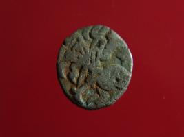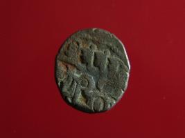 | Description / विवरण | This is a copper coin. Shape is almost circular. Surface is smooth. It is a silver coating coin. The depression on obverse side depicts a man sitting on a horse and holding a spear in his right hand and reverse side a bull in a sitting position and some inscriptions written above. Appearance is metallic bronze. |