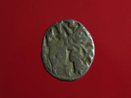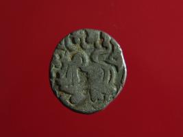 | Description / विवरण | This is a copper coin. Shape is almost circular. Surface is smooth. It is a silver coating coin. The depression on obverse side depicts a man sitting on a horse and holding a spear in his right hand and reverse side a bull in a sitting position and some inscriptions written above. Appearance is metallic bronze. |