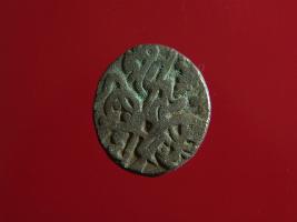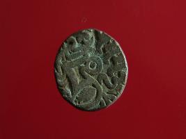 | Description / विवरण | This is a copper coin. Shape is almost circular. Surface is smooth. It is a silver coating coin. The depression on obverse side depicts a man sitting on a horse and holding a spear in his right hand and reverse side a bull in a sitting position and some inscriptions written above. Appearance is metallic bronze. |