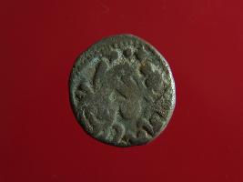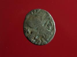 | Description / विवरण | This is a copper coin. Shape is almost circular. Surface is smooth. It is a silver coating coin. The depression on obverse side depicts a man sitting on a horse and holding a spear in his right hand and reverse side a bull in a sitting position and some inscriptions written above. Appearance is metallic bronze. |