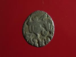 | Description / विवरण | This is a copper coin. Shape is almost circular. Surface is smooth. It is a silver coating coin. The depression on obverse side depicts a man sitting on a horse and holding a spear in his right hand and reverse side a bull in a sitting position and some inscriptions written above. Appearance is metallic bronze. |