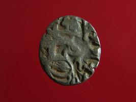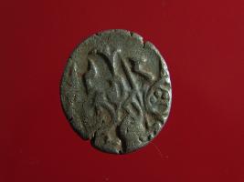 | Description / विवरण | This is a copper coin. Shape is almost circular. Surface is smooth. It is a silver coating coin. The depression on obverse side depicts a man sitting on a horse and holding a spear in his right hand and reverse side a bull in a sitting position and some inscriptions written above. Appearance is metallic bronze. |