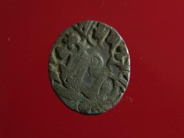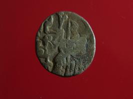 | Description / विवरण | This is a copper coin. Shape is almost circular. Surface is smooth. It is a silver coating coin. The depression on obverse side depicts a man sitting on a horse and holding a spear in his right hand and reverse side a bull in a sitting position and some inscriptions written above. Appearance is metallic bronze. |