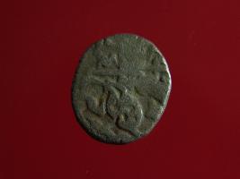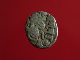 | Description / विवरण | This is a copper coin. Shape is almost circular. Surface is smooth. It is a silver coating coin. The depression on obverse side depicts a man sitting on a horse and holding a spear in his right hand and reverse side a bull in a sitting position and some inscriptions written above. Appearance is metallic bronze. |