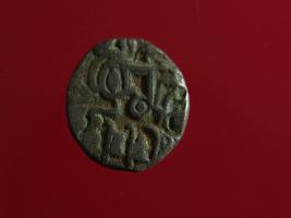 | Description / विवरण | This is a copper coin. Shape is almost circular. Surface is smooth. It is a silver coating coin. The depression on obverse side depicts a man sitting on a horse and holding a spear in his right hand and reverse side a bull in a sitting position and some inscriptions written above. Appearance is metallic bronze. |