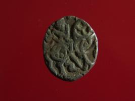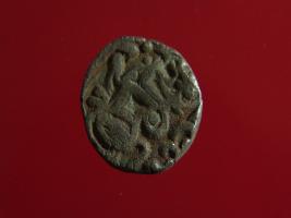 | Description / विवरण | This is a copper coin. Shape is almost circular. Surface is smooth. It is a silver coating coin. The depression on obverse side depicts a man sitting on a horse and holding a spear in his right hand and reverse side a bull in a sitting position and some inscriptions written above. Appearance is metallic bronze. |
