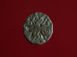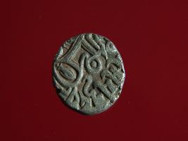| Description / विवरण | This is a copper coin. Shape is almost circular. Surface is smooth. It is a silver coating coin. The depression on obverse side depicts a man sitting on a horse and holding a spear in his right hand and reverse side a bull in a sitting position and some inscriptions written above. Appearance is metallic bronze. |