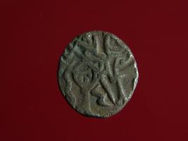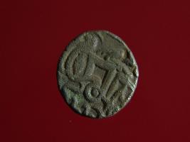 | Description / विवरण | This is a copper coin. Shape is almost circular. Surface is smooth. It is a silver coating coin. The depression on obverse side depicts a man sitting on a horse and holding a spear in his right hand and reverse side a bull in a sitting position and some inscriptions written above. Appearance is metallic bronze. |