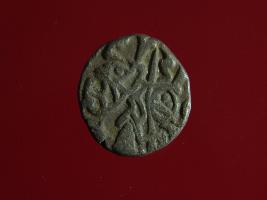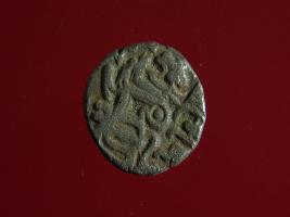| Description / विवरण | This is a copper coin. Shape is almost circular. Surface is smooth. It is a silver coating coin. The depression on obverse side depicts a man sitting on a horse and holding a spear in his right hand and reverse side a bull in a sitting position and some inscriptions written above. Appearance is metallic bronze. |