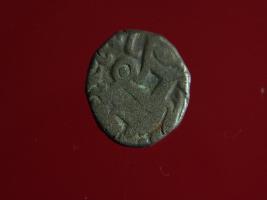 | Description / विवरण | This is a copper coin. Shape is almost circular. Surface is smooth. It is a silver coating coin. The depression on obverse side depicts a man sitting on a horse and holding a spear in his right hand and reverse side a bull in a sitting position and some inscriptions written above. Appearance is metallic bronze. |