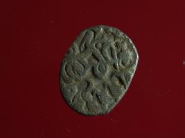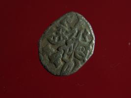 | Description / विवरण | This is a copper coin. Shape is almost circular. Surface is smooth. It is a silver coating coin. The depression on obverse side depicts a man sitting on a horse and holding a spear in his right hand and reverse side a bull in a sitting position and some inscriptions written above. Appearance is metallic bronze. |