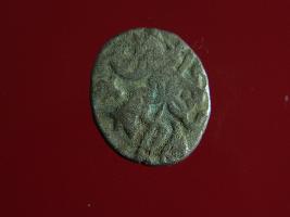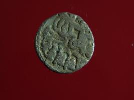 | Description / विवरण | This is a copper coin. Shape is almost circular. Surface is smooth. It is a silver coating coin. The depression on obverse side depicts a man sitting on a horse and holding a spear in his right hand and reverse side a bull in a sitting position and some inscriptions written above. Appearance is metallic bronze. |