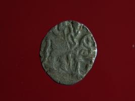 | Description / विवरण | This is a copper coin. Shape is almost circular. Surface is smooth. It is a silver coating coin. The depression on obverse side depicts a man sitting on a horse and holding a spear in his right hand and reverse side a bull in a sitting position and some inscriptions written above. Appearance is metallic bronze. |