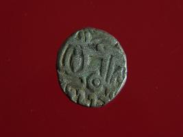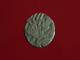 | Description / विवरण | This is a copper coin. Shape is almost circular. Surface is smooth. It is a silver coating coin. The depression on obverse side depicts a man sitting on a horse and holding a spear in his right hand and reverse side a bull in a sitting position and some inscriptions written above. Appearance is metallic bronze. |
