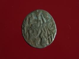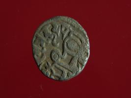 | Description / विवरण | This is a copper coin. Shape is almost circular. Surface is smooth. It is a silver coating coin. The depression on obverse side depicts a man sitting on a horse and holding a spear in his right hand and reverse side a bull in a sitting position and some inscriptions written above. Appearance is metallic bronze. |