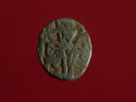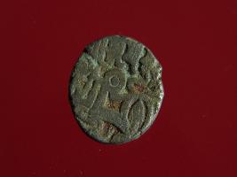 | Description / विवरण | This is a copper coin. Shape is almost circular. Surface is smooth. It is a silver coating coin. The depression on obverse side depicts a man sitting on a horse and holding a spear in his right hand and reverse side a bull in a sitting position and some inscriptions written above. Appearance is metallic bronze. |