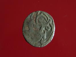 | Description / विवरण | This is a copper coin. Shape is almost circular. Surface is smooth. It is a silver coating coin. The depression on obverse side depicts a man sitting on a horse and holding a spear in his right hand and reverse side a bull in a sitting position and some inscriptions written above. Appearance is metallic bronze. |
