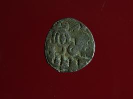 | Description / विवरण | This is a copper coin. Shape is almost circular. Surface is smooth. It is a silver coating coin. The depression on obverse side depicts a man sitting on a horse and holding a spear in his right hand and reverse side a bull in a sitting position and some inscriptions written above. Appearance is metallic bronze. |