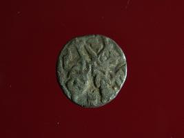 | Description / विवरण | This is a copper coin. Shape is almost circular. Surface is smooth. It is a silver coating coin. The depression on obverse side depicts a man sitting on a horse and holding a spear in his right hand and reverse side a bull in a sitting position and some inscriptions written above. Appearance is metallic bronze. |