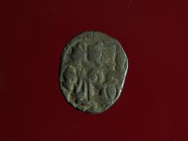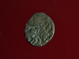 | Description / विवरण | This is a copper coin. Shape is almost circular. Surface is smooth. It is a silver coating coin. The depression on obverse side depicts a man sitting on a horse and holding a spear in his right hand and reverse side a bull in a sitting position and some inscriptions written above. Appearance is metallic bronze. |