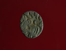 | Description / विवरण | This is a copper coin. Shape is almost circular. Surface is smooth. It is a silver coating coin. The depression on obverse side depicts a man sitting on a horse and holding a spear in his right hand and reverse side a bull in a sitting position and some inscriptions written above. Appearance is metallic bronze. |