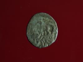 | Description / विवरण | This is a copper coin. Shape is almost circular. Surface is smooth. It is a silver coating coin. The depression on obverse side depicts a man sitting on a horse and holding a spear in his right hand and reverse side a bull in a sitting position and some inscriptions written above. Appearance is metallic bronze. |