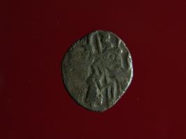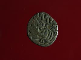 | Description / विवरण | This is a copper coin. Shape is almost circular. Surface is smooth. It is a silver coating coin. The depression on obverse side depicts a man sitting on a horse and holding a spear in his right hand and reverse side a bull in a sitting position and some inscriptions written above. Appearance is metallic bronze. |