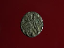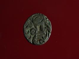 | Description / विवरण | This is a copper coin. Shape is almost circular. Surface is smooth. It is a silver coating coin. The depression on obverse side depicts a man sitting on a horse and holding a spear in his right hand and reverse side a bull in a sitting position and some inscriptions written above. Appearance is metallic bronze. |