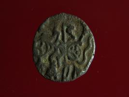 | Description / विवरण | This is a copper coin. Shape is almost circular. Surface is smooth. It is a silver coating coin. The depression on obverse side depicts a man sitting on a horse and holding a spear in his right hand and reverse side a bull in a sitting position and some inscriptions written above. Appearance is metallic bronze. |