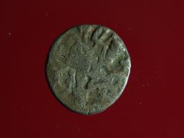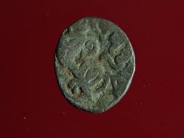 | Description / विवरण | This is a copper coin. Shape is almost circular. Surface is smooth. It is a silver coating coin. The depression on obverse side depicts a man sitting on a horse and holding a spear in his right hand and reverse side a bull in a sitting position and some inscriptions written above. Appearance is metallic bronze. |