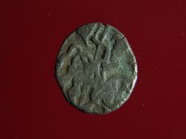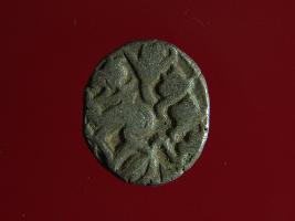 | Description / विवरण | This is a copper coin. Shape is almost circular. Surface is smooth. It is a silver coating coin. The depression on obverse side depicts a man sitting on a horse and holding a spear in his right hand and reverse side a bull in a sitting position and some inscriptions written above. Appearance is metallic bronze. |