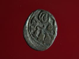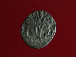 | Description / विवरण | This is a copper coin. Shape is almost circular. Surface is smooth. It is a silver coating coin. The depression on obverse side depicts a man sitting on a horse and holding a spear in his right hand and reverse side a bull in a sitting position and some inscriptions written above. Appearance is metallic bronze. |