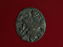 | Description / विवरण | This is a copper coin. Shape is almost circular. Surface is smooth. It is a silver coating coin. The depression on obverse side depicts a man sitting on a horse and holding a spear in his right hand and reverse side a bull in a sitting position and some inscriptions written above. Appearance is metallic bronze. |
