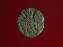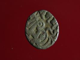 | Description / विवरण | This is a copper coin. Shape is almost circular. Surface is smooth. It is a silver coating coin. The depression on obverse side depicts a man sitting on a horse and holding a spear in his right hand and reverse side a bull in a sitting position and some inscriptions written above. Appearance is metallic bronze. |
