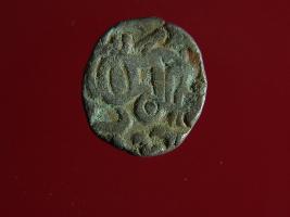 | Description / विवरण | This is a copper coin. Shape is almost circular. Surface is smooth. It is a silver coating coin. The depression on obverse side depicts a man sitting on a horse and holding a spear in his right hand and reverse side a bull in a sitting position and some inscriptions written above. Appearance is metallic bronze. |