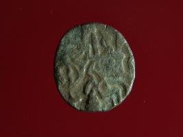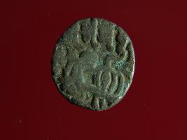 | Description / विवरण | This is a copper coin. Shape is almost circular. Surface is smooth. It is a silver coating coin. The depression on obverse side depicts a man sitting on a horse and holding a spear in his right hand and reverse side a bull in a sitting position and some inscriptions written above. Appearance is metallic bronze. |