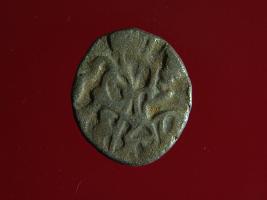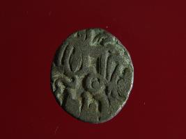 | Description / विवरण | This is a copper coin. Shape is almost circular. Surface is smooth. It is a silver coating coin. The depression on obverse side depicts a man sitting on a horse and holding a spear in his right hand and reverse side a bull in a sitting position and some inscriptions written above. Appearance is metallic bronze. |