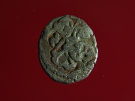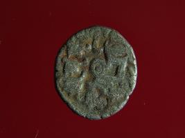 | Description / विवरण | This is a copper coin. Shape is almost circular. Surface is smooth. It is a silver coating coin. The depression on obverse side depicts a man sitting on a horse and holding a spear in his right hand and reverse side a bull in a sitting position and some inscriptions written above. Appearance is metallic bronze. |