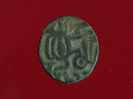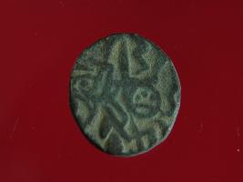 | Description / विवरण | This is a copper coin with coating of silver on it. The depression on obverse side depicts a deity sitting on a horse and holding a spear in his right hand. On reverse side a bull in a sitting position and some inscriptions are written above. Shape is almost circular. Surface is smooth. Appearance is metallic bronze. |