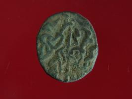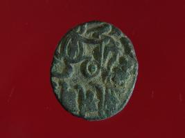 | Description / विवरण | This is a copper coin with coating of silver on it. The depression on obverse side depicts a deity sitting on a horse and holding a spear in his right hand. On reverse side a bull in a sitting position and some inscriptions are written above. Shape is almost circular. Surface is smooth. Appearance is metallic bronze. |